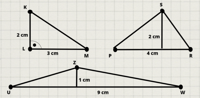 Możesz narysować dowolny typ trójkąta; ważne, aby zgadzały się pola. Musisz tak dobrać długość podstawy i wysokości, by pole było równe wskazaną ilość.
