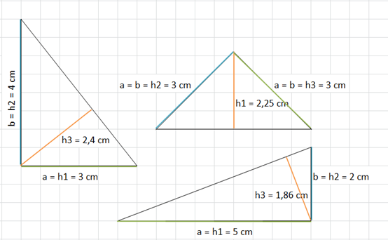 W tym zadaniu musisz narysować 3 trójkąty prostokątne (czyli jeden z kątów ma równo 90°) i narysować dla każdego wierzchołka każdego trójkąta wysokość oraz zmierzyć jej długość.