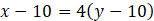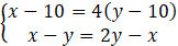 Oznacz przez x lata Jasia, a przez y – lata Małgosi. 10 lat temu Jaś był 4 razy starszy od Małgosi, zatem