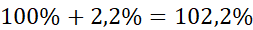 102,2% odpowiada 1,022
