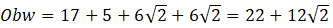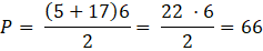 Aby obliczyć pole tego trapezu, znaleziono najpierw wartość jej wysokości. Jest ona jednym z ramion trójkąta równoramiennego prostokątnego, aby obliczyć długość tego ramienia odjęto długość krótszej podstawy, od dłuższej. Następnie w celu obliczenia obwodu, znaleziono długość ramienia trapezu, poprzez pomnożenie długości boku trójkąta równoramiennego przez