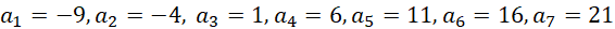 W tym ćwiczeniu musisz wyznaczyć wyrazy siedmioelementowego ciągu arytmetycznego, wyznaczyć jego wzór oraz podać, o ile różnią się kolejne wyrazy tego ciągu od wyrazu początkowego.