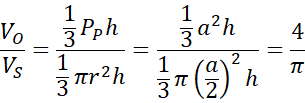 Udowodnij, że stosunek objętości ostrosłupa do objętości stożka jest równy