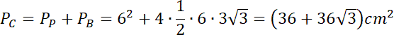 Wyznacz pole powierzchni całkowitej ostrosłupa prawidłowego czworokątnego, którego krawędź podstawy ma długość 6 cm, a kąt płaski przy wierzchołku ma miarę