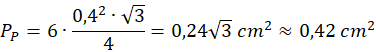 Oblicz pole podstawy ostrosłupa. Zauważ, że sześciokąt foremny składa się z sześciu identycznych trójkątów równobocznych o boku długości 0,4 m.