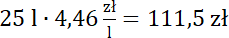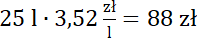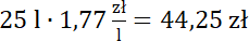Odczytaj ceny z dystrybutorów i pomnóż je przez liczbę zakupionych litrów paliwa. Przy mnożeniu ułamków przez liczbę naturalną zapomnij na chwilę o przecinku. Wynik będzie miał tyle samo miejsc po przecinku co początkowa liczba.