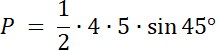 Skorzystaj z twierdzenia na pole trójkąta, które uwzględnia sinus kąta w trójkącie i oblicz to pole.