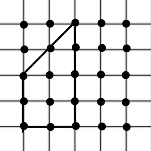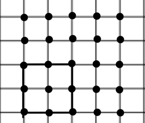 Narysuj w zeszycie podany układ kropek, a w nim narysuj kilka czworokątów.