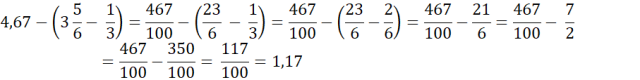 W tym ćwiczeniu musisz zamienić podane liczby na jeden rodzaj ułamka, następnie wykonać działanie w nawiasie i na samym końcu odejmowanie.