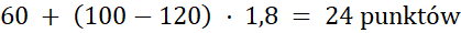 Policz punkty przyznawane skokowi na 100 m długości według wzoru: liczba punktów = 60 + (x-120) · 1,8.