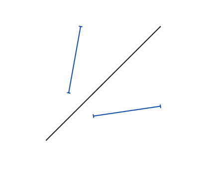 Skonstruuj odcinek w taki sposób, że wszystkie punkty pokrywają się z odcinkiem po drugiej stronie prostej.