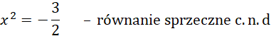 Dowolna liczba rzeczywista podniesiona do kwadratu jest nie mniejsza od 0, więc podane równanie nie ma rozwiązań w dziedzinie liczb rzeczywistych.