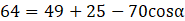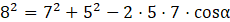 Dla dowolnego trójkąta kwadrat jednego z boków jest równy sumie kwadratów dwóch pozostałych odjąć podwojony iloczyn długości tych boków oraz cosinusa kąta między nimi.