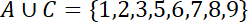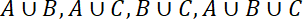 . Zapis ten oznacza wszystkie elementy, które znajdują się w zbiorze A lub zbiorze B. W podobny sposób znajdź sumę zbiorów A i C, B i C oraz A, B i C.