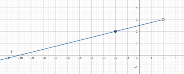 Zauważ, że wykresem będzie półprosta, mająca koniec w prawym krańcu podanego przedziału. Wybierz krańcowy i dowolny argument, który będzie należał do podanego przedziału. Na tej podstawie oblicz
