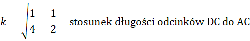 Zauważ, że obliczona skala jest stosunkiem długości odcinków DC do AC. Skorzystaj z tego, że znasz skalę podobieństwa tych trójkątów i na tej podstawie oblicz długość boku trójkąta DEC.