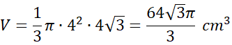 Wyznacz objętość stożka, jeśli jego przekrój osiowy jest trójkątem równobocznym o polu równym