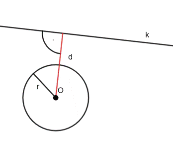 W tym zadaniu określ położenie prostej k na podstawie jej odległości od środka okręgu.
