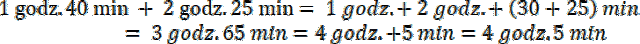 Minuty dodawaj osobno, godziny dodawaj osobno. Pamiętaj, że 60 minut to jedna godzina.