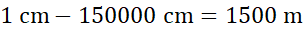 Podaj, ilu metrom w terenie odpowiada 1 cm na mapie dla skali 1:150000.