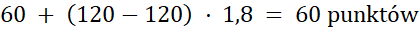 Policz punkty przyznawane skokowi na 120 m długości według wzoru liczba punktów = 60 + (x-120) · 1,8.