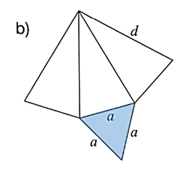 Ostrosłup to taki wielościan, który w podstawie ma dowolny wielokąt oraz którego wszystkie ściany boczne są trójkątami o wspólnym wierzchołku, który jest punktem nieleżącym w płaszczyźnie podstawy. Podstawą narysowanego ostrosłupa jest trójkąt równoboczny. Pokoloruj go dowolnym kolorem.