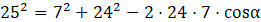 Ustal, czy trójkąt o bokach a = 25, b = 7, c = 24 jest ostrokątny, prostokątny czy rozwartokątny. Oblicz miarę kata znajdującego się naprzeciwko najdłuższego boku.
