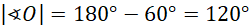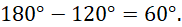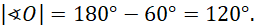 Trójkąt zbudowany z dwóch promieni oraz cięciwy o niewiadomej długości jest trójkątem równoramiennym i kąt przy wierzchołku O ma miarę: