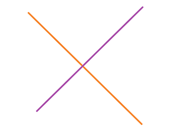 Mówimy, że dwie proste są prostopadłe, gdy kąt pomiędzy nimi wynosi 90°. W tym przypadku odpowiednim punktem przecięcia kratek jest (patrząc od góry) lewy dolny wierzchołek kratki.