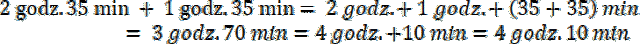 Minuty dodawaj osobno, godziny dodawaj osobno. Pamiętaj, że 60 minut to jedna godzina.