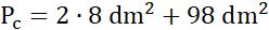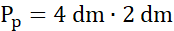 Pole podstawy jest polem równoległoboku o wymiarze 4 dm i wysokości 2 dm.
