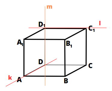 W tym zadaniu musisz narysować sześcian ABCDA1B1C1D1, gdzie odcinek DD1 zawiera się w prostej m oraz podać przykład prostych k i l, które przechodzą przez wierzchołki sześcianu i zarazem są prostopadłe do prostej m oraz są skośne.