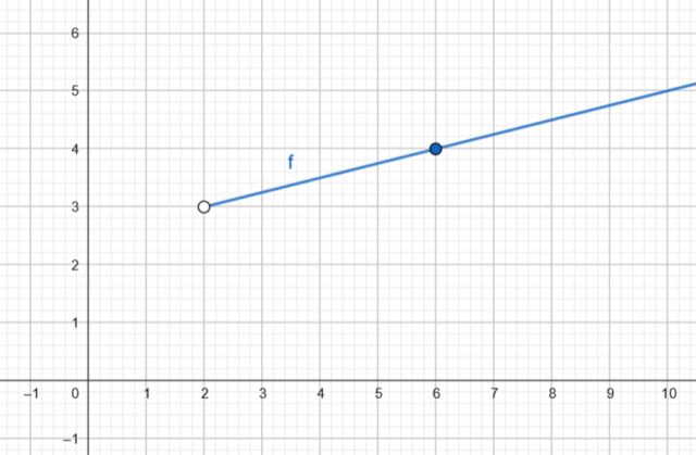 Zauważ, że wykresem będzie półprosta, mająca początek w lewym krańcu podanego przedziału. Wybierz krańcowy i dowolny argument, który będzie należał do podanego przedziału. Na tej podstawie oblicz