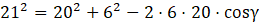 Dla dowolnego trójkąta kwadrat jednego z boków jest równy sumie kwadratów dwóch pozostałych odjąć podwojony iloczyn długości tych boków oraz cosinusa kąta między nimi.