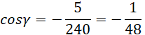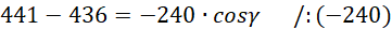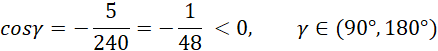 Określ miarę kąta γ na podstawie otrzymanej wartości cosinusa.