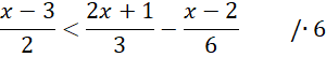 Całą nierówność pomnóż przez najmniejszą wspólną wielokrotność liczb znajdujących się w mianownikach ułamków. Przenieś wszystkie liczby z