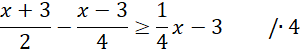 Całą nierówność pomnóż przez najmniejszą wspólną wielokrotność liczb znajdujących się w mianownikach ułamków. Przenieś wszystkie liczby z