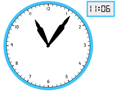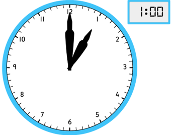 Zaznacz wskazówki tak, aby zgadzały się godziny. Musisz do tego zadania przypomnieć sobie, że krótka wskazówka wskazuje godzinę, a długa minuty.