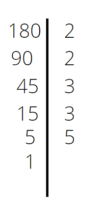 180 = 2 ∙ 2 ∙ 3 ∙ 3 ∙ 5