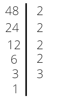 48 = 2 ∙ 2 ∙ 2 ∙ 2 ∙ 3