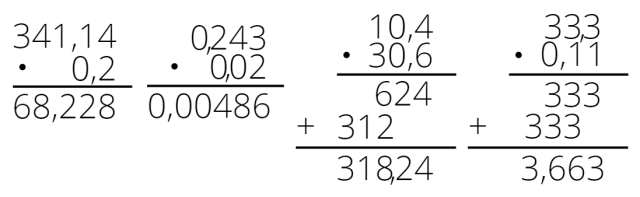 Wpisz do wyników przecinki w odpowiednich miejscach.