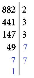 882 = 2 · 3 · 3 · 7 · 7 = 2 · 32 · 72