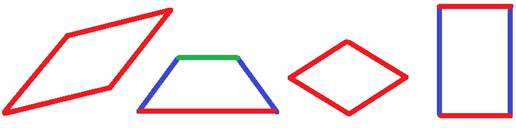 Podpisz kolejno: romb, trapez, romb, prostokąt.