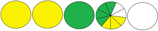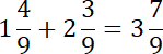 Dodaj do siebie cyfry całości tych liczb (2 + 1 = 3), a następnie liczniki (cyfry, które znajdują się nad kreską ułamkową) 4 + 3 = 7, a cyfra pod kreską ułamkową zostaje bez zmian.