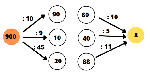 W drugim przypadku możesz pomnożyć iloraz przez dzielniki (liczby obok strzałek), by otrzymać dzielną.