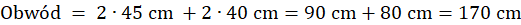 Jeśli od obwodu odejmiesz 2 długości pierwszego boku, to otrzymasz 2 długości drugiego boku.