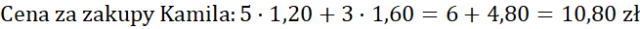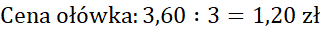 Trzy ołówki kosztują 3,60 zł a 5 długopisów – 8 zł. Oblicz, ile za zakupy zapłacił Kamil, który kupił 5 ołówków i 3 długopisy