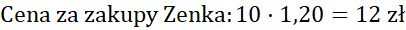 W tym ćwiczeniu musisz obliczyć cenę ołówka oraz długopisu i mnożąc je razy ilość zakupionych sztuk obliczyć kwotę zakupów Kamila, Wandy oraz Zenka. Porównaj kwoty zakupów Wandy oraz Zenka.
