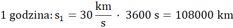 Oblicz drogę przebytą przez Ziemię w czasie godziny oraz doby. Prędkość Ziemi to 30 .