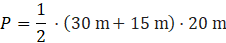 a = 15 m, b = 30 m, h = 16 m + 4 m = 20 m